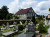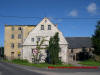 Dom przy drodze głównej oraz stary młyn.