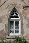 Dawny dwór w Rakowicach, okna obiektu oraz zabudowa gospodarcza w dawnym majątku