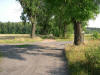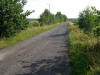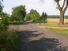 Skrzyżowanie polnych dróg przed Dobrominem, gdzie w starym folwarku wypala się dziś węgiel drzewny.