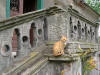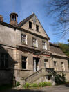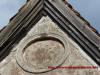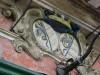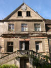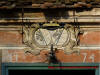 Wejście do pałacu zdobi kartusz herbowy rodu von Trach oraz zegar i kalendarz.