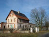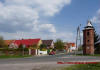 Nieczynna stara mleczarnia oraz zabudowa miejscowości.