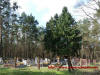 Cmentarz na skraju lasu. Pozostałości starych niemieckich nagrobków wyrzucono za płot.