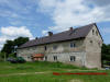 Pałac - zdjęcie sprzed 1945, obecne miejsce po pałacu oraz zabudowa gospodarczo - mieszkalna dawnego majątku.