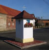 Kapliczka w centrum miejscowości oraz pamiątkowy kamień.