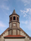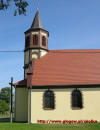 Nowy kościół w Sobczycach oraz jego wnętrze (ołtarz).