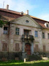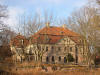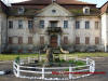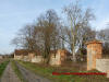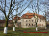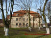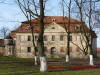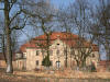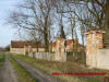 Pałac oraz wejście na teren dziedzińca od strony wiejskiej drogi głównej - wczesna wiosna 2013 rok.