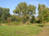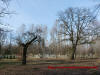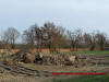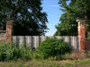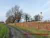 Mur okalający majątek od strony zachodniej oraz miejsce po pałacu w 2014 roku.
