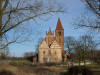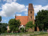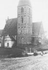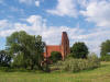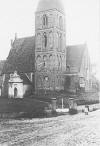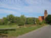 Kościół ewangelicki i pusty plac pozostały po świątyni i okalającym go cmentarzu.