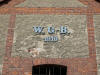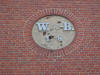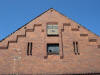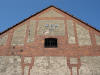 Inicjały właściciela majątku sprzed 1945 roku na szczytach budynków gospodarczych.