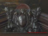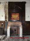 Sufit, wnętrz obiektu oraz kominek z kartuszem herbowym.
