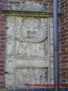 Kościół p.w. św. Michała Archanioła, płyty wmurowane w ścianę kościoła i pozostałość dawnego cmentarza okalającego niegdyś kościół.