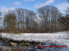 Miejsce po pałacu i fragment muru oporowego stanowiącego jego już ostatni element.