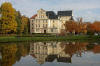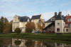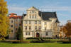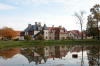 Budynek w sąsiedztwie pałacu oraz fragment parku.