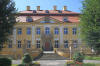 Obecny pa³ac wzniesiono oko³o 1730 roku, rozbudowuj¹c pierwotny zamek renesansowy z oko³o 1527 roku. Gruntownie restaurowany w 1890, poddany zosta³ remontowi w 1966 roku. Jest to monumentalne za³o¿enie o jedenastoosiowych fasadach g³ównych, akcentowanych podzia³em pilastrowym, nakryte mansardowym dachem z lukarnami. Najokazalsz¹ fasadê zachodni¹, podkreœlaj¹ dodatkowo dwubiegowe, kamienne schody z tarasami ujêtymi balustradami ozdobionymi wazonami. Wnêtrza w czêœci nakrywaj¹ sklepienia kolebkowe, w czêœci zaœ dekoracyjne plafony z malowid³ami z XVIII wieku, ilustruj¹cymi sceny mitologiczne.