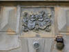 Kartusz herbowy nad głównym wejściem do szkoły oraz inne na tyłach obiektu.