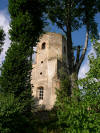 Ruina wieży stanowiąca pozostałość kościoła parafialnego wzmiankowanego już w 1346 roku.