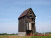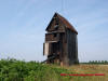 Wiatrak koźlak oraz leżące u jego podstawy koło młyńskie wyprodukowane w Głogowie.