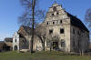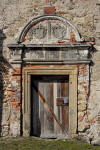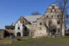 Ruina dworu oraz portal nad wejściem prowadzącym na dziedziniec.