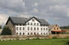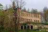 Ruina trzyskrzydłowego, trzykondygnacyjnego pałacu, tarasy, oficyna pałacowa oraz zajazd Hohenzollern - Gasthof Hohenzollern.