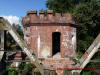 Archiwalna fotografia żołnierzy na tle ceglanej strażnicy na zachodnim przyczółku mostu.
