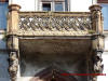 balkonem na wspornikach w kształcie gryfów. Balustrada ażurowa z motywami liścia