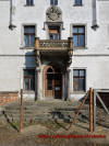 dębu. Powyżej wmurowany jest kartusz herbowy. Detal architektoniczny ceramiczny