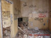 Zdewastowane wnętrze budynku oraz zniszczona toaleta przy stacji kolejowej Stany.