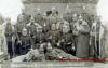 Archiwalna fotografia żołnierzy na tle ceglanej strażnicy na zachodnim przyczółku mostu.