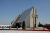 Dawny dwór w Jakubowie Lubińskim oraz współczesny kościół p.w. Najświętszego Serca Pana Jezusa.