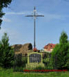 Cmentarz w Parchowie oraz głaz z pamiątkową tablicą.