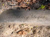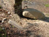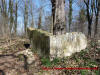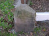 Kamień wskazujący kierunek i odległość do Polkowic oraz łaciński napis na figurze przed wjazdem do dawnego majątku. Drugie zdjęcie pokazuje puste miejsce po kamieniu którego już w 2015 roku nie było.