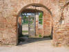Brama wjazdowa do byłego majątku. Ostatnie zdjęcie wykonane w 2005 roku przed ułożeniem nowej drogi jest już archiwalne.