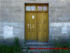 Budynek dawnego ratusza w Urazie. Drzwi wejściowe oraz zniszczony zegar.