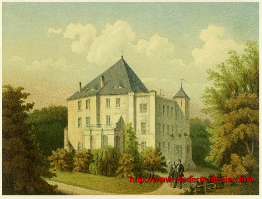 rnhaDie alte Burg Auras an der Oder findet sich schon im zwölften Jahrhundert, wahrscheinlich war sie ein Haus des Tempels, ein Sitz jener streitbaren Miliz Christi, wie sich die Rittermönche des Templerordens zu nennen pflegten. Mit Benutzung der Ueberreste des alten Templerschlosses erbaute anno 1466 die jetzige Burg der mächtige Vasall der Krone Böhmen Christoph von Skopp, der ein eifriger Anhänger des Königs Georg Podiebrad von Böhmen war. Zeitweise wurde Auras auch eine fürstliche Residenz, 1489 residirte mit Erlaubniss des Kaisers Matthias der Piastische Herzog von Oels Conrad VIII. daselbst Das Schloss Auras scheint auch im sechszehnten und siebenzehnten Jahrhundert irn unmittelbaren Besitz der Landesherren verblieben zu sein, ab und zu deren Vertretern als Residenz dienend. Im achtzehnten Jahrhundert war Auras mit dem dazugehörigen Burglehen im Besitz eines italiänischen Grafen de Campo, demnach müssen eigene Verhältnisse gewaltet haben, denn gleich nach der Preussischen Besitznahme von Schlesien kam Auras nebst den dazu gehörigen Ortschaften an Seine Königliche Hoheit den Prinzen Heinrich von Preussen, der es in den neunziger Jahren des vorigen Jahrhunderts an einen Herrn von Koschötzky veräussern Hess. Im Jahre 1839 hat die Wittwe des verewigten Königlich Preussischen Staatsministers Freiherrn Caspar Friedrich von Seh uckmann das freie Burglehen Auras käuflich erworben und das alte Schloss gänzlich wiederherstellen lassen, das stattliche Gebäude ist eine architektonische Merkwürdigkeit. Die Basis desselben bildet nämlich ein Dreieck, die beiden ersten Stockwerke haben schön gewölbte Räume mit acht FUSS tiefen Mauern, das hohe Dach ist ebenfalls dreikantig. Der gegenwärtige Besitzer ist der Sohn der obengenannten letzten Besitzerin, der Königlich Preussische Kammerherr Karl Friedrich August Freiherr von Schuckmann, Landes-Aeltester und Kreis-Deputirter des Kreises Wohlau. Die von Schuckmann sind eine alte osnabrückische Sippe, die seit 300 Jahren in Mecklenburg ansässig ist, ein Geschlecht, aus welchem sich Viele nicht nur im Mecklenburgischen, sondern auch im Preussischen Civii- und Militairdienst hervorgethan. Die freiherrliche Würde brachte der Königlich Preussische Staatsminister Caspar Friedrich von Schuckmann an sein Haus, er wurde am 11. Januar 1834, dem Tage seines fünfzigjährigen Dienstjubiläums von König Friedrich Wilhelm HI. in den Freiherrnstand erhoben und ihm zugleich sein Wappen mit einem zweiten Helme gebessert. Der von Schuckmann'sche Wappenschild mit Schildesfuss zeigt im goldnen Felde ein roth bekleidetes Mannsbild, das auf dem Haupte eine runde schwarze Mütze trägt, in jedem Arme aber eine rothe Fahne hält. Der Schildesfuss zeigt in blau drei silberne Kleeblätter. Auf dem Helme zur Rechten zwei mit den unteren Enden zusammengestellte silberne Baumäste, dazwischen zwei rothe Fahnen in's Andreaskreuz gelegt. Helmdecken blau, roth und gold. Der andere Helm, bei der Erhebung in den Freihermstand hinzugekommen, zeigt einen Hund wachsend (vielleicht der Bracken aus dem hohenzollerschen Wappen). Helmdecken blau und silbern. Das Burglehen Auras an der Oder, drei Meilen von Breslau, zwei und eine halbe Meile von Wohlau und ebensoweit von Trebnitz gelegen, begreift 3 Ortschaften mit 800 Einwohnern, bis zum Jahre 1807 gehörte auch die frühere Mediatstadt Auras dazu; die etwa 1000 Einwohner zählt, welche sich von der Tuchfabrikation und der Schifffahrt nähren.