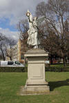 na postumencie posągowi Marii, towarzyszą figury świętych – Augustyna, Jadwigi,