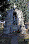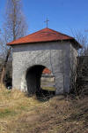 Kapliczka pamiątkowa, tablica informacyjna, budynek bramny - wejście na teren dawnego cmentarza ewangelickiego (gdzie stał też kiedyś kościół ewangelicki) oraz epitafia na murze otaczającym zniszczona świątynię ewangelicką.