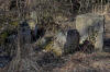 Wejście na teren cmentarza oraz pozostałości starych niemieckich elementów nagrobnych sprzed 1945 roku.