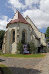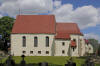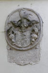 Tablica pamiątkowa - Gedenktafel oraz cmentarz przykościelny i tablica herbowa na ścianie kościoła.