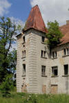 Zespół dworski w Żarkach Średnich oraz kartusze herbowe na elewacji wieży dworu - 2011 rok.