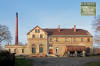 Budynek dworca kolejowego przy nieczynnej linii kolejowej oraz dawna gorzelnia.