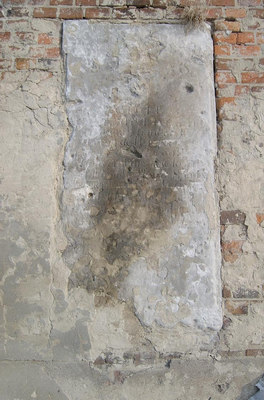 Tablica na pocz. XX w i jej stan obecny. Tłumaczenie polskie treści inskrypcji: