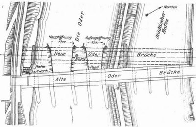 1917, 3.06. -Uroczyste otwarcie mostu drogowego przez Odrę (Hindenburgbrücke ), o konstrukcji stalowej. Most miał 138 m długości i ważył prawie 810