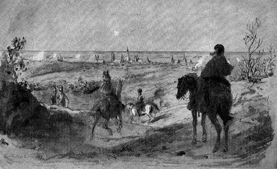 15 listopada - oblężenie twierdzy, widok z Góry Górkowskiej. (rys. R. Knoetel).