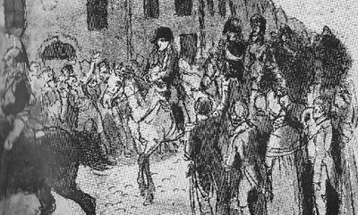 Wjazd Napoleona Bonaparte w 1812 r. do twierdzy. Rys. P. Knoetla.